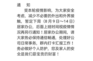 2021年8月7日,因?yàn)橐粓鐾蝗缙鋪淼囊咔槲錆h市江夏區(qū)按下了暫停鍵。如晴天霹靂,所以得計(jì)劃不能如期進(jìn)行,這個(gè)疫情就像一個(gè)煙花隨時(shí)都會爆發(fā),給我們的生活工作帶來了很多困擾接上級領(lǐng)通知,依客思積極配合疫情防控。